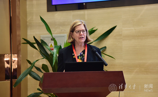 华盛顿大学副教务长玛丽·林斯特荣在会上发言,她认为,华盛顿大学与清华大学在两地合作中扮演着重要角色。本次论坛的召开加强了两校在能源领域方面的合作机制,她期待两校未来能够共建包括中美“2+2”合作之外更多的合作形式。