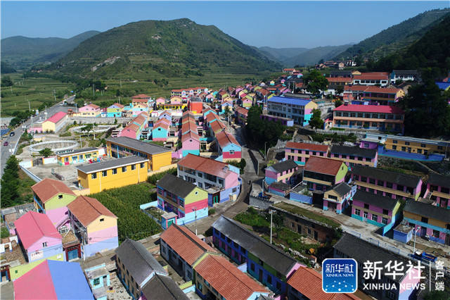 ↑这是航拍的山西省壶关县南平头坞村(9月6日摄)。从2016年开始,南平头坞村通过统一规划,为村里的房屋刷上了不同颜色的涂料。新华社记者詹彦摄