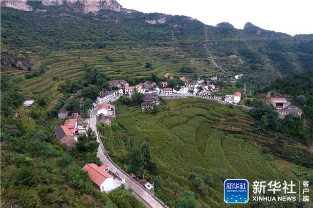 ↑这是航拍的山西省壶关县东柏坡村(9月5日摄)。东柏坡村依山而建,村内房屋呈半圆形分布。近年来,吸引了不少游客来村观光拍照。新华社记者詹彦摄