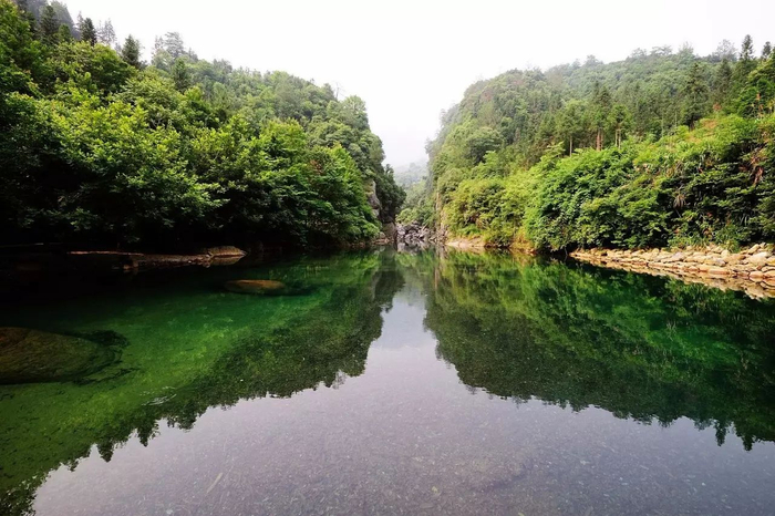 这里溪流纵横,碧绿清澈,在石凼平地,形成一个个大小不一的清潭,晶莹剔透,异彩纷呈,如同一块块翡翠。丰富的生物资源,以及玩好的生态系统,使牯牛降成为“华东地区动植物基因库”,被生态学者称为“绿色自然博物馆”。