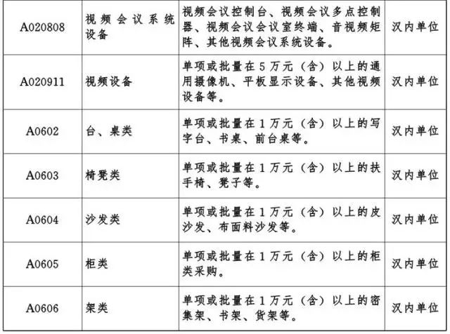 湖北省2018年政府集中采购目录及标准