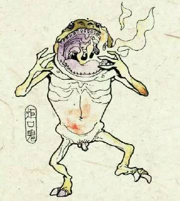 此鬼的外形非常威猛,身如菩提大,口中常吐烈焰......别以为很酷,倒霉就倒霉在这里,甭管是什么美食,还没送到嘴里,就被烧成灰烬了,只留两眼泪朦胧.....炬口鬼真堪称是衰鬼中的战斗机。
