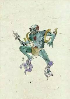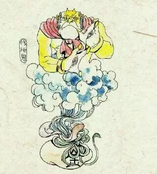 “老鱼跳浪,瘦蛟婆娑;巡行不已,尽职尽责。”夜叉是古代传说中一种半鬼半神的小神灵,从梵文音译而来。最初是印度神话中的神灵,传到中国才堕落为鬼,非常倒霉。“夜叉”意译为“捷疾鬼”,因为他勇猛迅疾,吃苦耐劳,白天为龙王巡海,天黑了为阎王巡夜。