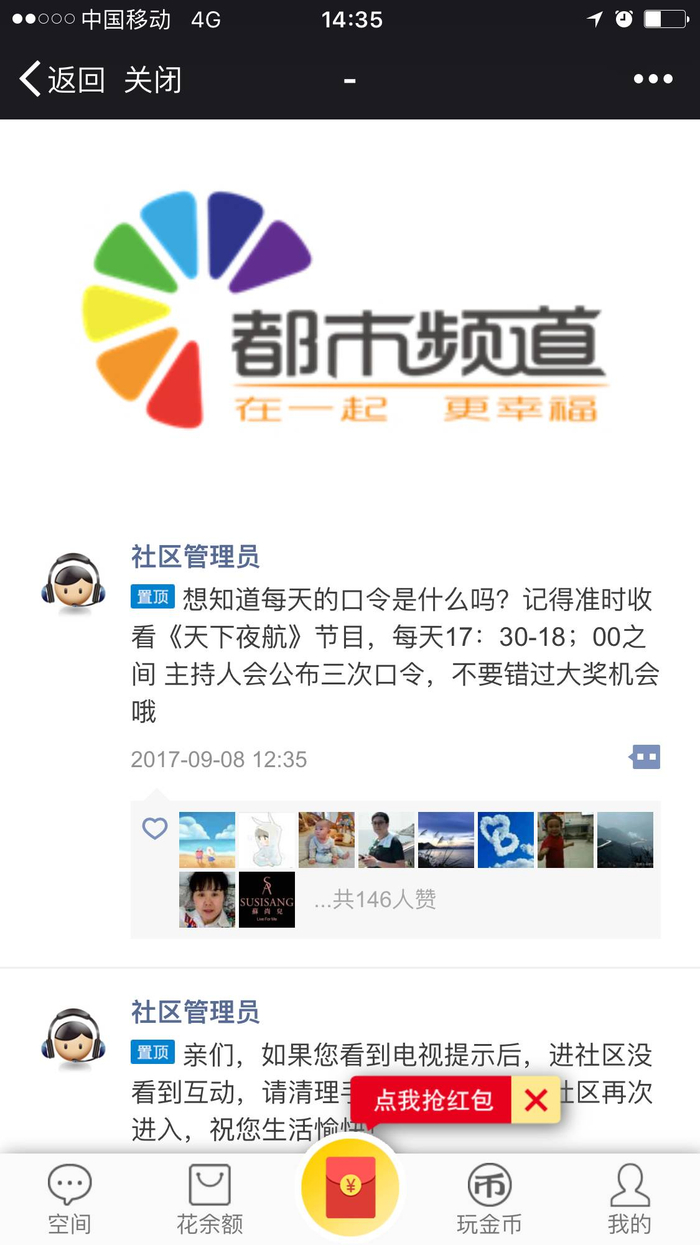 在“欢乐七点”开放之后,点击进入社区才是正确互动操作!此时的互动界面是这样的↓