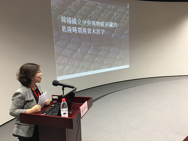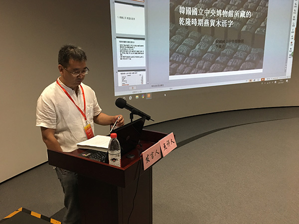 2013年在故宫发表过《乾隆庚戌辛亥朝鲜燕贸活字考》的复旦大学古籍整理研究所教授陈正宏,曾专程赴首尔韩国国立中央博物馆目验被推定为“燕贸木字”这两种中国清代木活字。他注意到本次会议上李载贞提到,在朝鲜郑元容所撰《袖香编》一书里,有哲宗八年(1857)“燕贸唐字”已被烧毁的记录。已被烧毁的中国活字,怎么又出现了?“我现在推测,当时从中国传入朝鲜的官造木活字,可能有两批,一批是武英殿聚珍版活字中的复字,这批可能是金简偷偷送的。不过考虑到朝鲜王朝对于楷体活字特别喜欢,所以可能同时通过金简请内府工匠刻了一批朝鲜汉字式样的楷体的高水准木活字,这批是付钱的。”