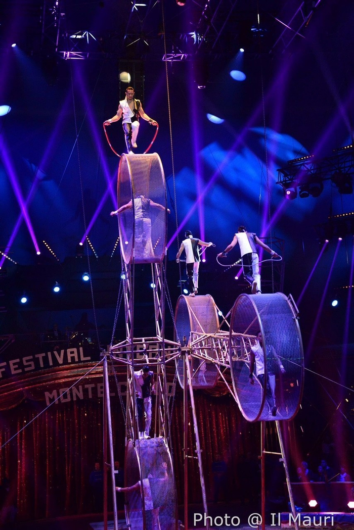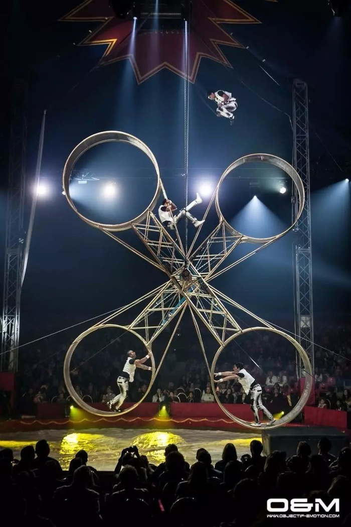 阿根廷、哥伦比亚马戏艺术家《大飞轮》由八人轮番表演的双箭四轮,演员众多,气势宏伟,动作惊险巧妙。