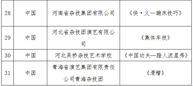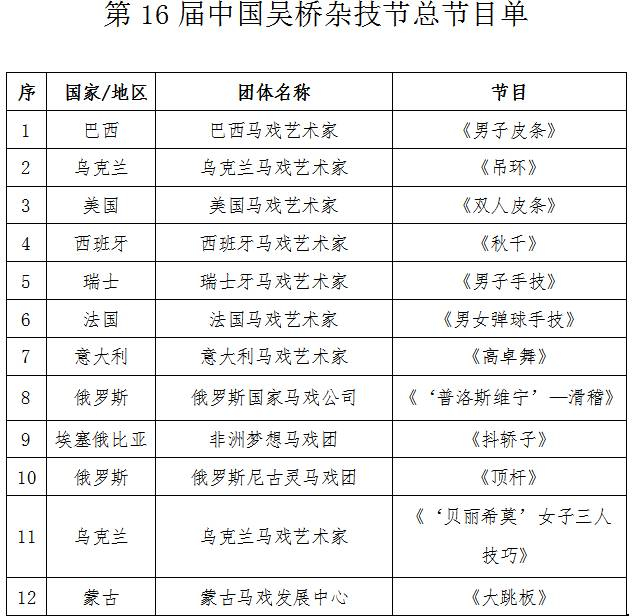 本届杂技节将有18个国家和地区的31个节目齐登场,高空、地面、滑稽、魔术节目……亮点纷呈、应有尽有!