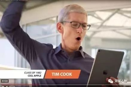 在奥本大学的一支宣传片中,全场观众都在为奥本橄榄球队高唱战歌,作为奥本大学1982 年毕业生的库克不能亲临现场,就举着iPad用Facetime来唱,动作慷慨激昂,引得不少果粉十脸懵逼:叔这是加入传销组织了吗?