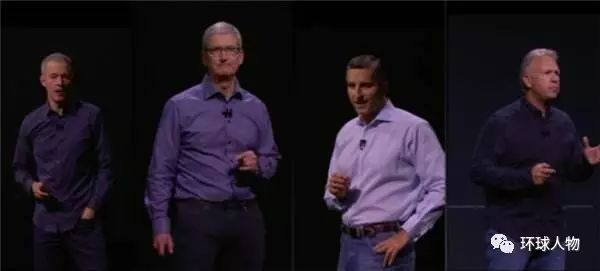 前年的苹果新产品发布会,他穿的还是衬衫,你没看错,是紫色的。不光是他,其他好几位发言者也都身着紫衣上台。晃眼的颜色一度让人们忍不住想象苹果总部的理工科宅男们穿着紫色衣服在彩虹旗下亲密无间研讨业务的场景。