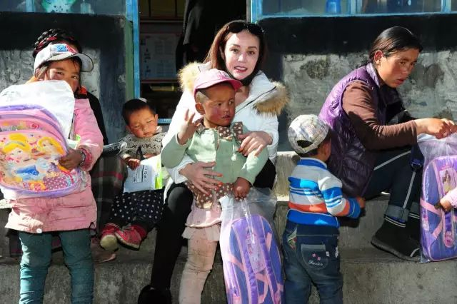 ☘ 华商报读者汪小玲女士不顾高原反应,与推村小朋友赠送书包之后留影