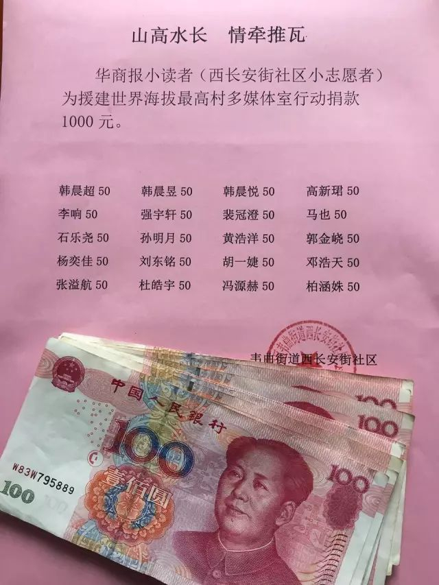 ☘ 华商报的小读者为世界海拔最高村捐款