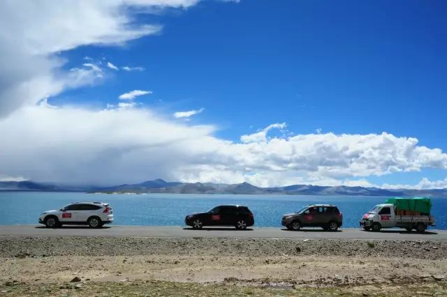 ☘ 9月6日15:31分,四辆“山高水长 情牵推瓦”的车队到达海拔5070米的世界最淡水湖普莫雍错