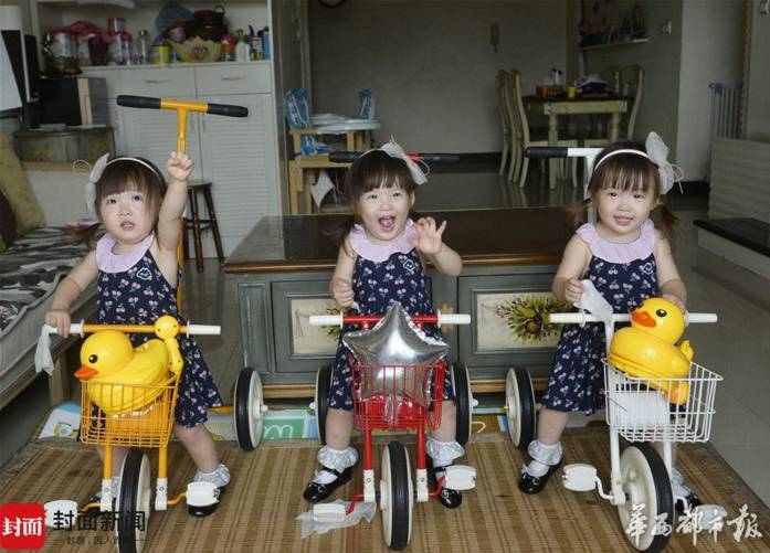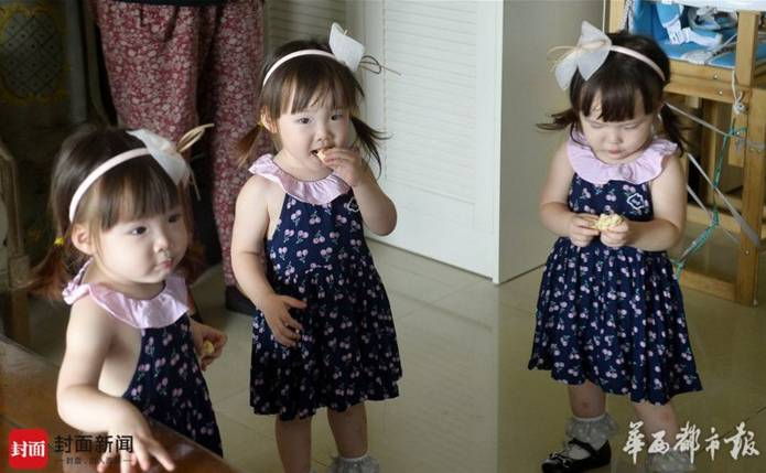 9月12日,刘曦的三胞胎女儿在家。雷远东 摄
