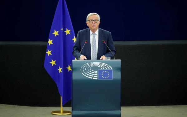 当地时间9月13日上午9时,欧盟委员会主席容克在法国斯特拉斯堡欧洲议会总部发表了年度盟情咨文。