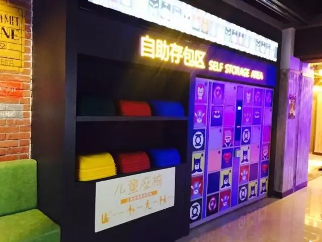 为了方便影友们的观影,影厅内还设有自助存包区,还特为带孩子观影的家长们准备了儿童座椅,细节之处彰显影院的高端服务~