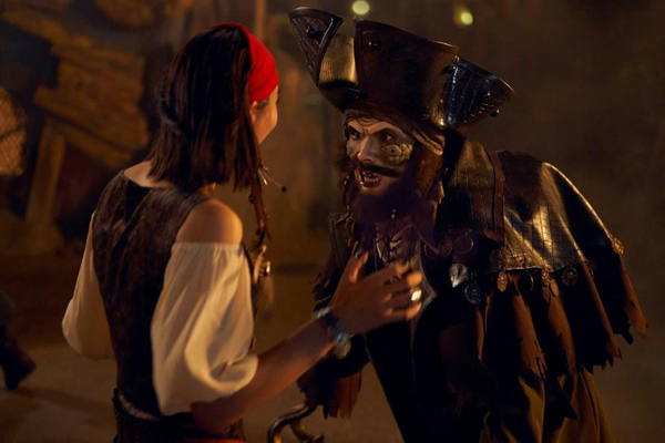 夜晚在“宝藏湾”的游客将发现,那儿被幽灵海盗们占领。《加勒比海盗5-死无对证》中的幽灵海盗们和船长萨拉查游走在“宝藏湾”的各个角落,在游客中寻找新的船员来加入他们的黑暗冒险。