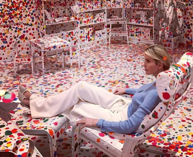 她的作品成为ins上的热门内容,伊万卡也po过与草间作品的合照↓↓