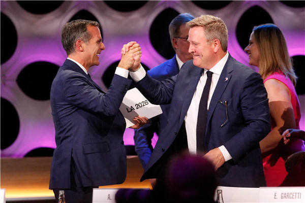 “祝贺巴黎2024!祝贺洛杉矶2028!同时产生两届奥运会举办地这一历史性的决定对巴黎、洛杉矶和国际奥委会来说是‘三赢’的。”国际奥委会主席巴赫在13日的国际奥委会全体会议上再次强调。