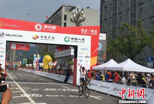 澳大利亚“ISOWHEY”运动洲际队的约瑟夫凭借超强冲刺能力率先冲过终点 马元豪 摄