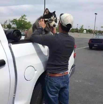 主人担心二哈坐车被吹懵,特意给他戴上了护目镜,然鹅,画风猝不及防——