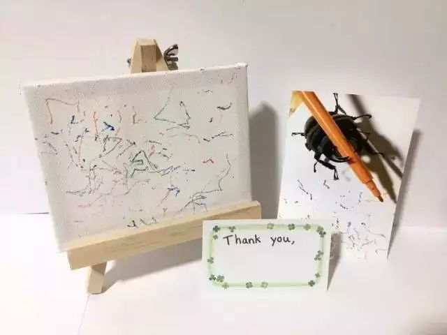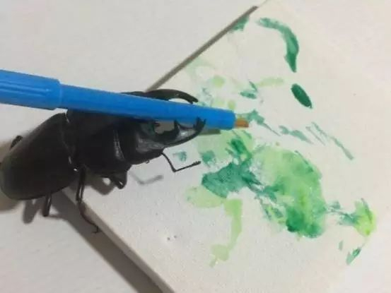 Spike有出色的“才能”,它可以夹着画笔在纸上留下一些简单的图案,而其他的甲虫没有它这样灵巧。