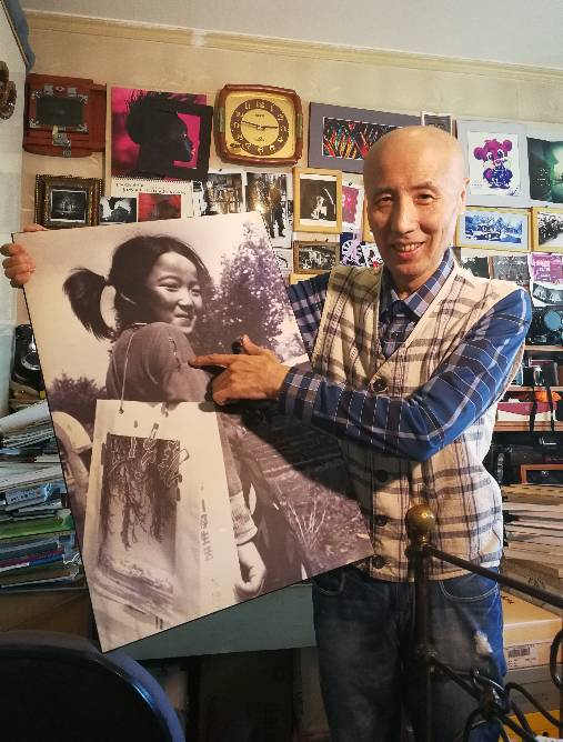 王丰和他当年拍摄的“希望女孩”的照片