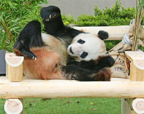 海外网9月14日电 在日本和歌山县白浜町的观光设施“AdventureWorld(探险世界)”,雄性大熊猫“永明”迎来了25周岁生日庆祝会。“永明”的生日礼物是一把扶手椅,它开心地躺在上面,憨态可掬的模样着实让人们喜爱。