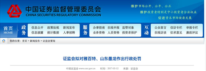 早在今年5月12日,证监会就披露称,雅百特对2015年至2016年9月的财务进行了造假,其中公司2015年虚增利润占当期利润总额约73%,2016年虚增利润占当期利润总额约11%。对此,证监会拟对雅百特处以60万元的罚款。