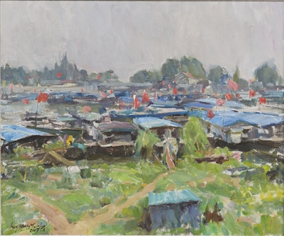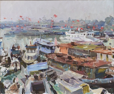 “来了就不想走,走前必须把美景画中留。”一到洪泽,李建民就被当地渔港的风景所吸引,在码头上足足呆了两天,直到把眼前的渔港搬进油画后才离开。李建民告诉记者:“这里的渔港最吸引我的地方就是完全是原生态的样子,渔民劳作、生活气息浓厚,这些鲜活的场景让我当下就忍不住拿出了画笔。”