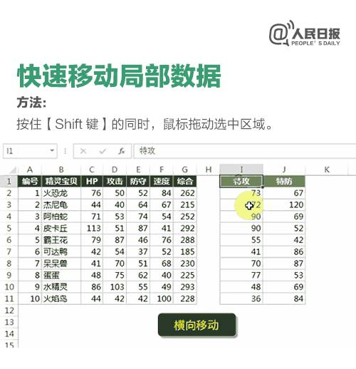怎样将局部数据快速移动到指定区域?