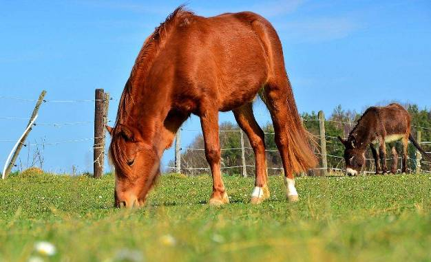 第二天,主人发觉驴不见了,便把马套到磨上。