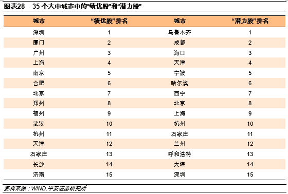 前15位房价表现良好的“绩优股”城市为:深圳,厦门,广州,上海,南京,合肥,北京,郑州,福州,武汉,杭州,天津,石家庄,长沙,济南。
