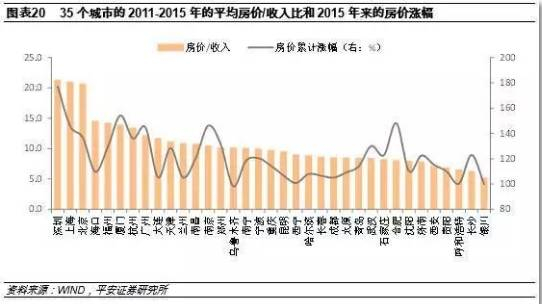 房价/收入比,即当地的房价与人均收入之比,通常被认为从流动性的角度衡量房价背后的支撑力量。但我们认为,在对房地产市场形成单边的上涨预期下,房价收入比越高的地方,代表着购房的杠杆越高,当地的购房热情越容易受到“贷款利率下降”,“首付贷优惠”等政策的撩动。
