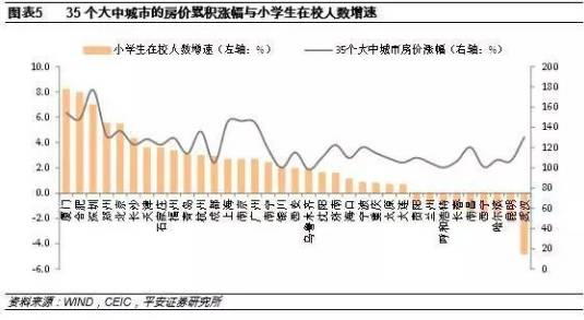 房价的上涨幅度与该地区新增小学生在校人数增速正相关。