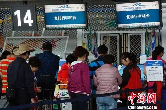 旅客排队办理乘机手续。 王小军 摄