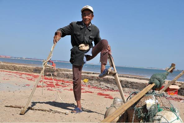 “年轻时力气大,最高的时候我踩过两米的高跷!”提及过往,大岚村75岁渔民老戴骄傲地说。“踩高跷推虾,在我们这里是独一份,除了咱们这里任何地方都没有这么干的,就连我们这里现在也不多啦。”老戴告诉记者,做高跷的木头也有讲究,“要用得长久,最好是用楸木,很直,见海水也不打弯。”