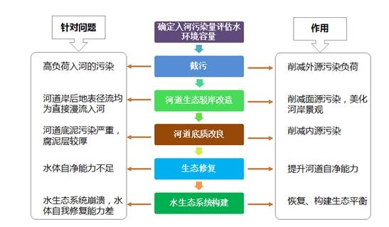 针对河道水质,导则提出一套河道水质控制技术路线。导则还指出,河道沉水植物系统的恢复,是生态系统构建最直观的表征。需构建自然稳定植物群落,提升河流净化系统的稳定性。体现挺水植物、浮叶植物、漂浮植物和沉水植物多种生态类型的交替变化过程。植物选取应考虑本地土著物种优先、生物多样性、可兼顾水质净化和景观功能等。