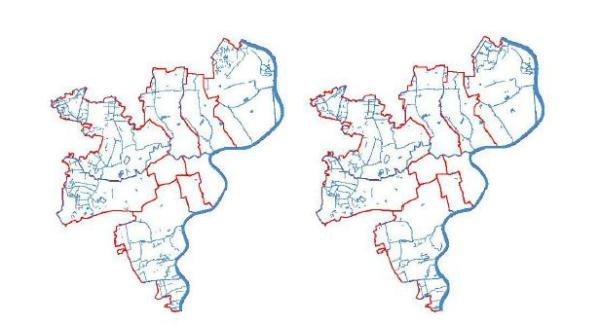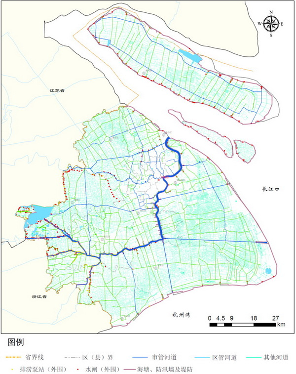 确保排水畅通,遵循平原感潮河网总体格局,分片划治。干支河道过流能力应相适应。满足区域排涝要求,合理设置引排水路径。落实海绵城市建设,充分发掘中小河道的调蓄能力,优化雨洪管理。具体而言,为配合太湖流域治理,确保上下游兼顾,在全市14个水利综合治理分片中,商榻片、浦南西片为敞开片,为上游泄洪留出必要通道,其余12个水利分片设闸控制。