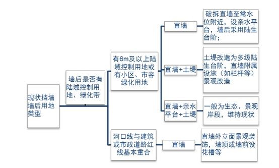 在河道蓝线方面,导则提出,以泄洪、航运等功能为主的河道蓝线应以保证过水规模为主,平面顺直。对支河的河道蓝线建议遵循河势、水情自然发展,兼顾水土保持。河道形态结合岸后建筑、景观等周边环境布置,尽量使岸线自然蜿蜒、河口宽度变化。