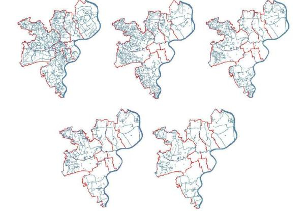 上海市中心城区(浦西)近百年来水系分布图(1918-2006)
