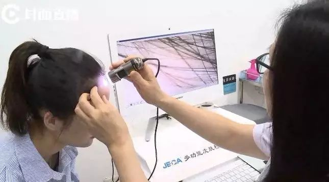 什么样的头发需要移植呢?医生小姐姐告诉大家,与患者前期沟通时,会对头皮和毛囊状况做检测,判断头发需不需要移植。美女主播亲自上阵,医生检测后说:“你的头发很浓密,不需要植发。”小编摸摸自己的头发,表示很羡慕~