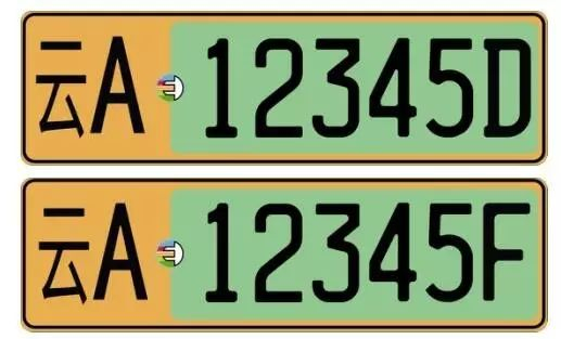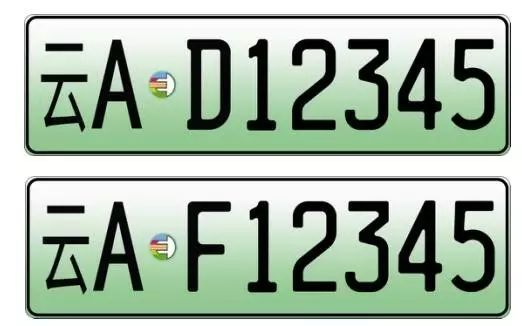 编码规则:新能源汽车专用号牌的编码规则是省份简称(1位汉字)+发牌机关代号(1位字母)+ 序号(6位)。小型新能源汽车专用号牌的第一位先启用字母D、F(D代表纯电动新能源汽车,F代表非纯电动新能源汽车),第二位可以使用字母或者数字,后四位必须使用数字。大型新能源汽车专用号牌的第六位先启用字母D、F(D代表纯电动新能源汽车,F代表非纯电动新能源汽车),前五位必须使用数字。如,昆明市一辆小型纯电动汽车号牌可编排为“云A·D12345”, 大型纯电动汽车号牌可编排为“云A·12345D”。