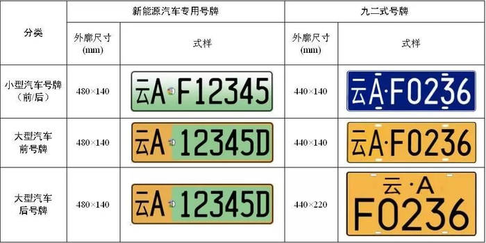 与普通车牌最大的区别是:号牌号码“升位”!新能源汽车专用号牌号码增加了1位,如原“云A·D1234”升位至“云A ·D12345”。