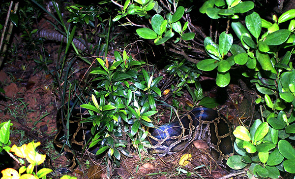 9月11日晩21时30分,云南省西双版纳州森林公安局勐仑派出所接到一名司机报警,称在路过小磨高速公路勐仑服务区的时候,有一条大蛇从高速公路中间穿过,可能压到了蛇了。