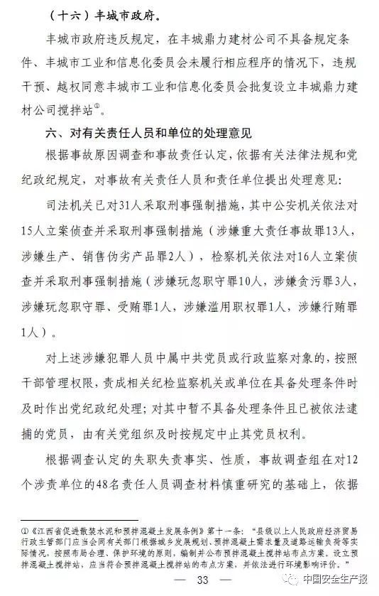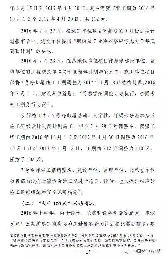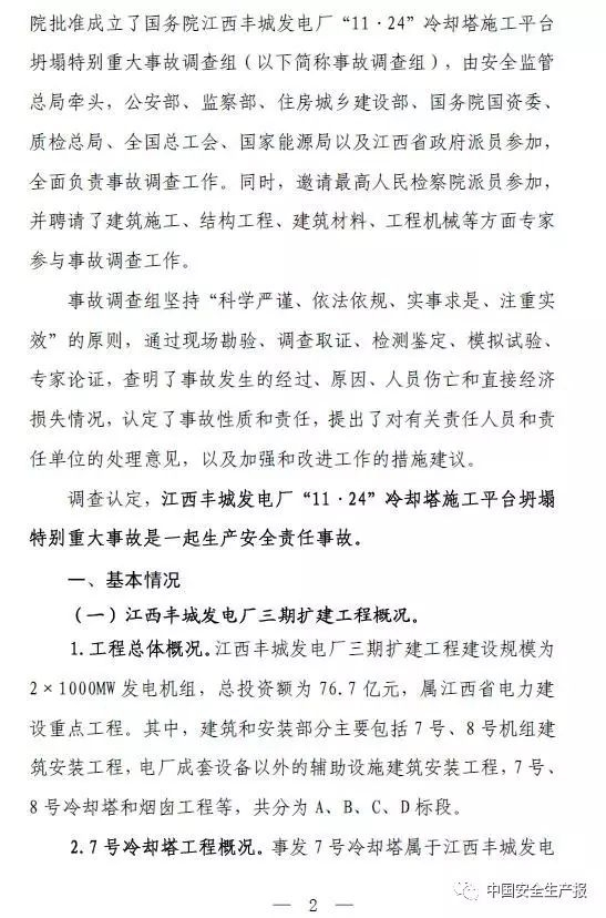 今日,安监总局网站公布江西丰城发电厂“11·24”冷却塔施工平台坍塌特别重大事故调查报告。