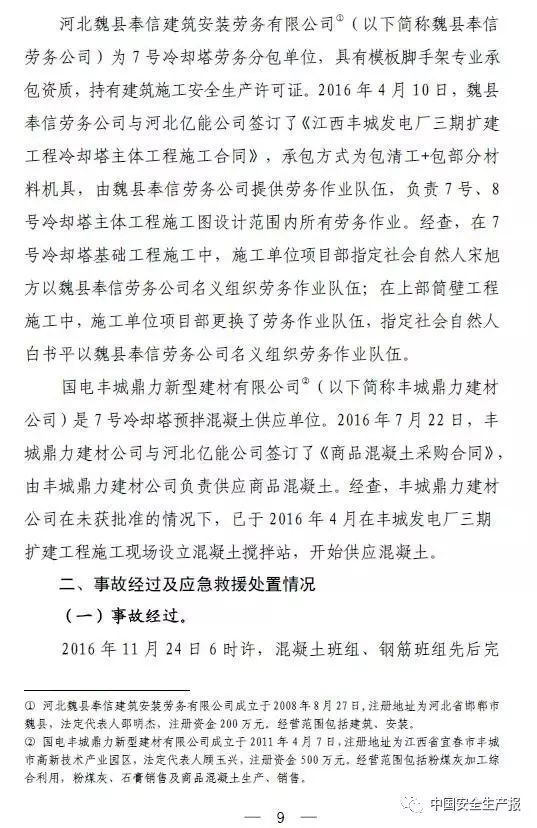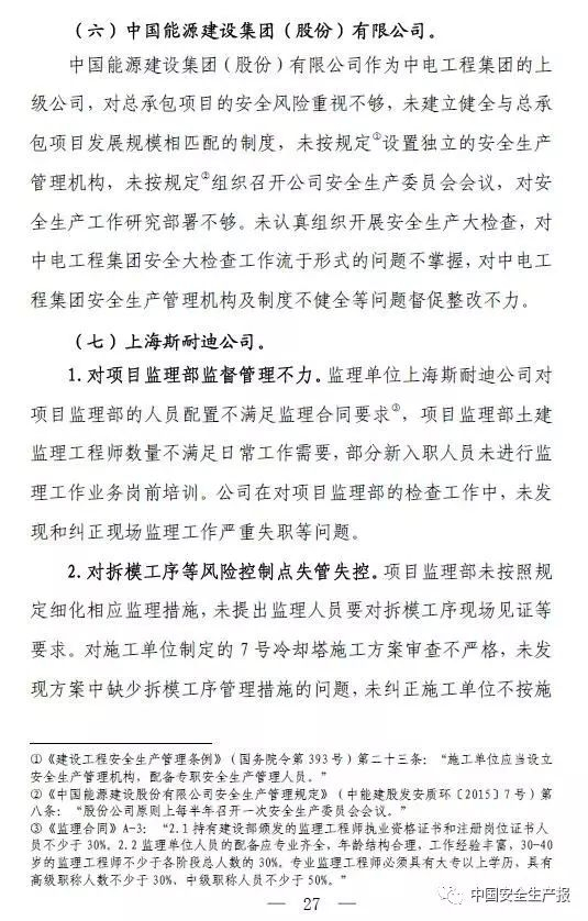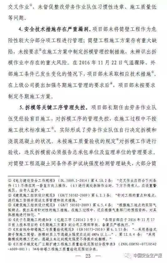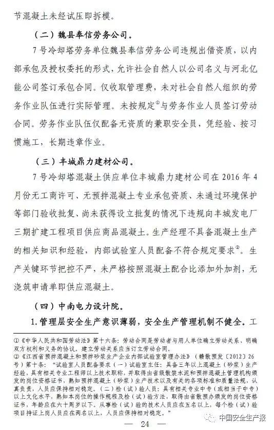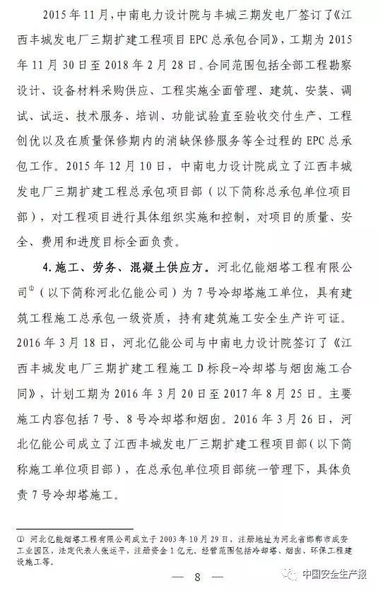 【PDF下载:江西丰城发电厂“11·24”冷却塔施工平台坍塌特别重大事故调查报告】