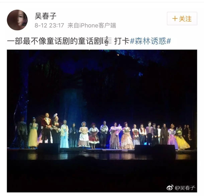 《Into The Woods》是百老汇音乐剧的经典作品之一,在美国百老汇和伦敦西区上演30年经久不衰。并于1987年战胜《歌剧魅影》获得美国话剧和音乐剧的至高奖——托尼奖。