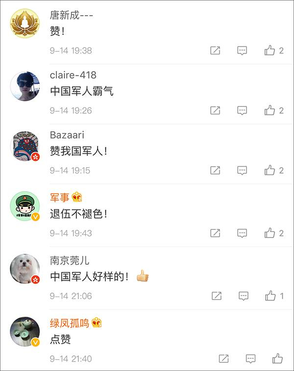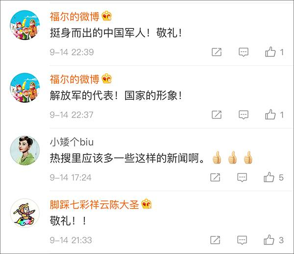 丁璇的挺身而出赢得网友的一致好评,纷纷表示,“中国军人,好样的!”