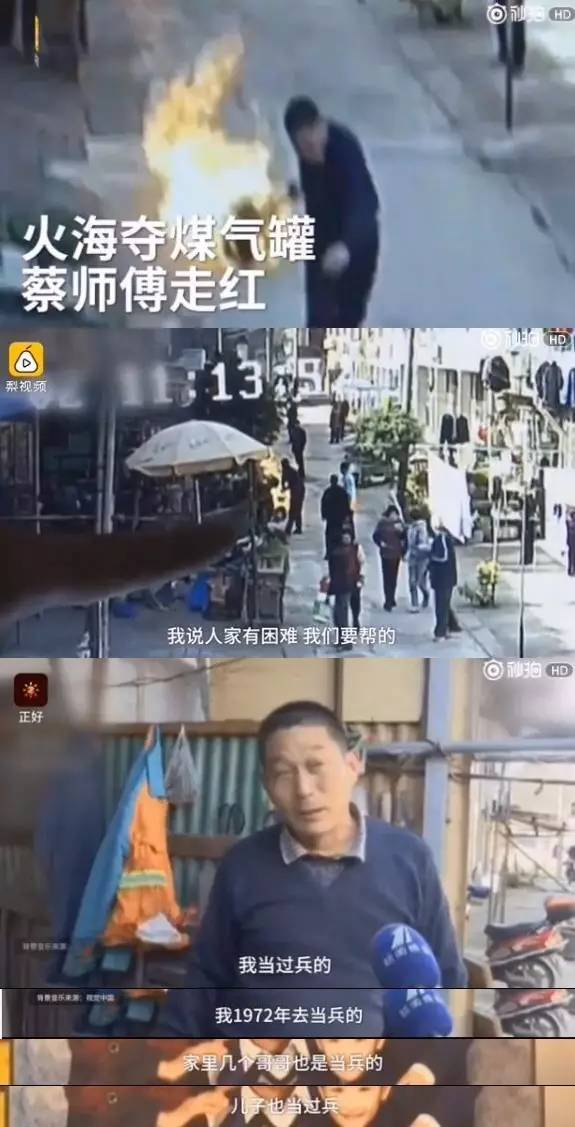 2016年12月2日蔡定峰火海夺煤气罐救邻居的事,迅速在网络上走红,邻居都夸他是身边的大英雄。近日他在接受媒体采访时表示:做点好事儿其实不难的。他还自述曾经两次跳下河救人,早些年当过兵。为这位中国好邻居点赞!