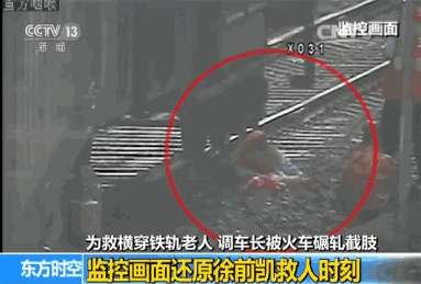 2017年7月6日,重庆荣昌火车站调车长徐前凯执勤,列车运行前方突然走出一名老婆婆横穿铁路,未有任何躲闪迹象。危急之时,徐前凯跳下火车,将老人拽出铁轨。老人平安无事,徐前凯右腿被火车碾压,膝盖及以下截肢。